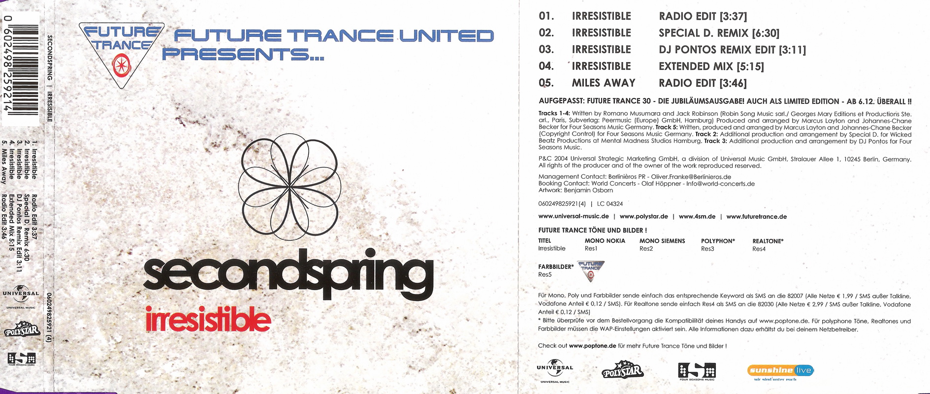 ![]() | 02 Future Trance United presents Secondspring - Irresistible (Special D. Remix).mp3 | 2024-09-01 12:55 | 15657 KB |
